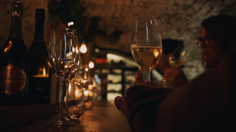 Champagneprovningen startar klockan 17:00 eller 18:30 (ni väljer önskad tid i bokningen). Vi ses i vår vinkällare med anor från 1400-talet, där vår sommelier guidar er genom tre olika stilar av champagne.